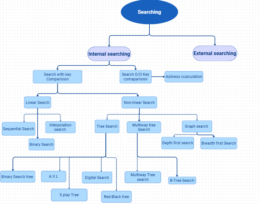 Searching is the process of locating a particular( item or record )from a collection of data elements stored in various data structures like arrays, linked lists, trees, graphs, or databases, based on a given property or key.