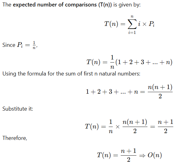 Average CaseT(n) = (n + 1)/2O(n)Key found at any random position.