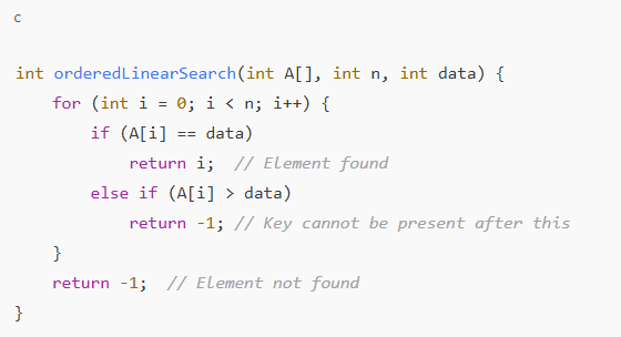 FeatureUnordered Linear SearchOrdered (Sorted) Linear Search